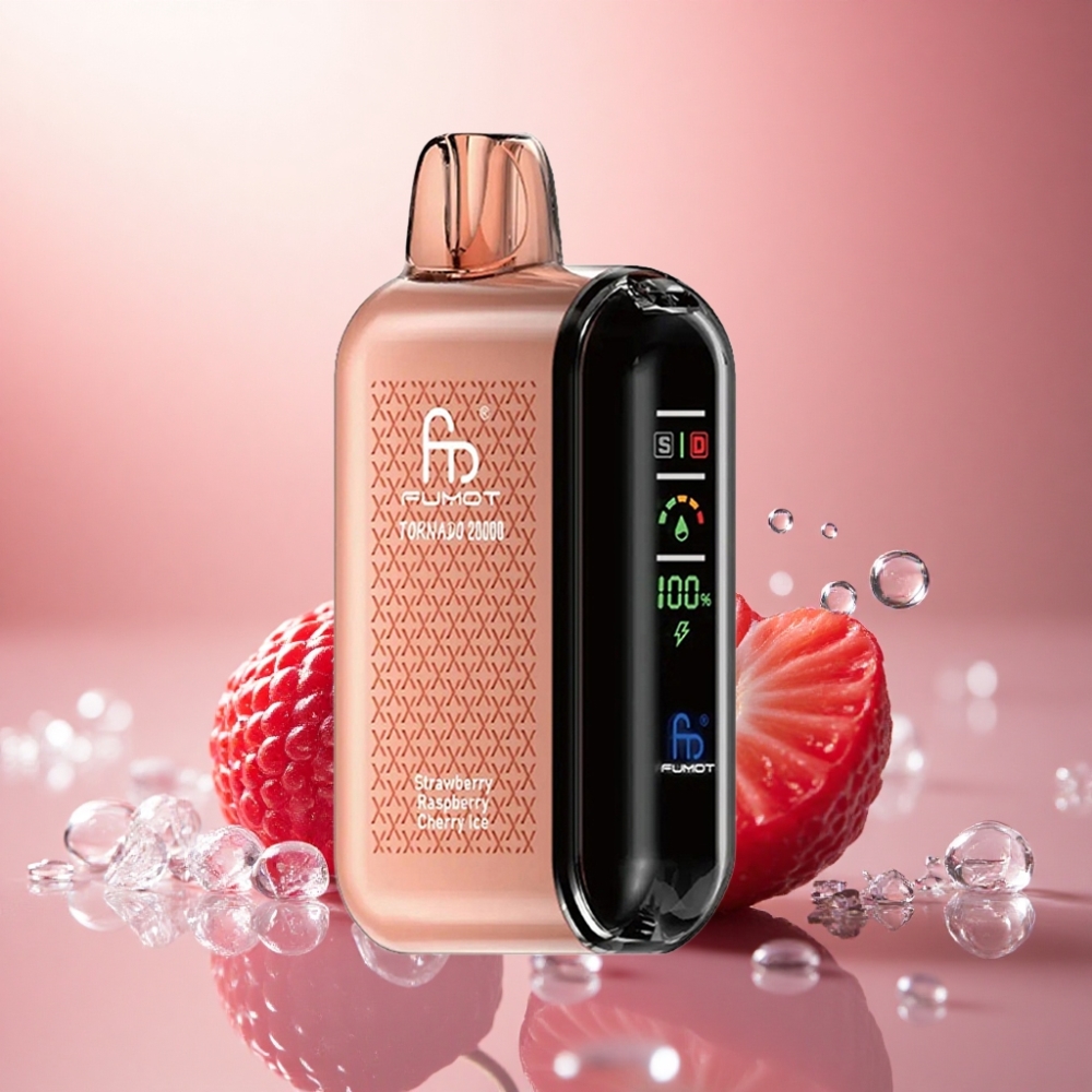 Fumot Tornado 20000 Puffs Jordgubb Hallon Körsbär Is med Dual Mesh Coil och 850mAh